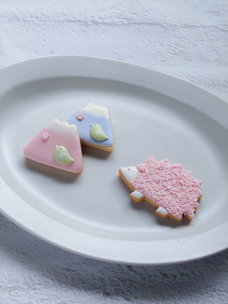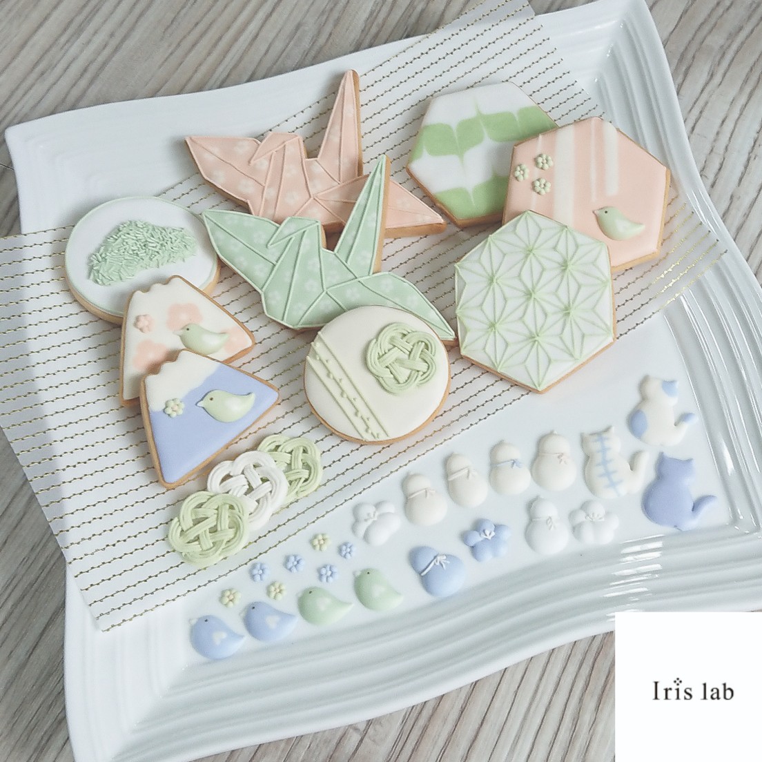 (丸型、ハリネズミ、六角形、富士山、折り鶴) - パーツ作成、アイシングクッキーに必要な材料一式、