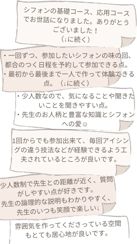 シフォンの基礎コース、応用コースでお世話になりました。ありがとうございました!